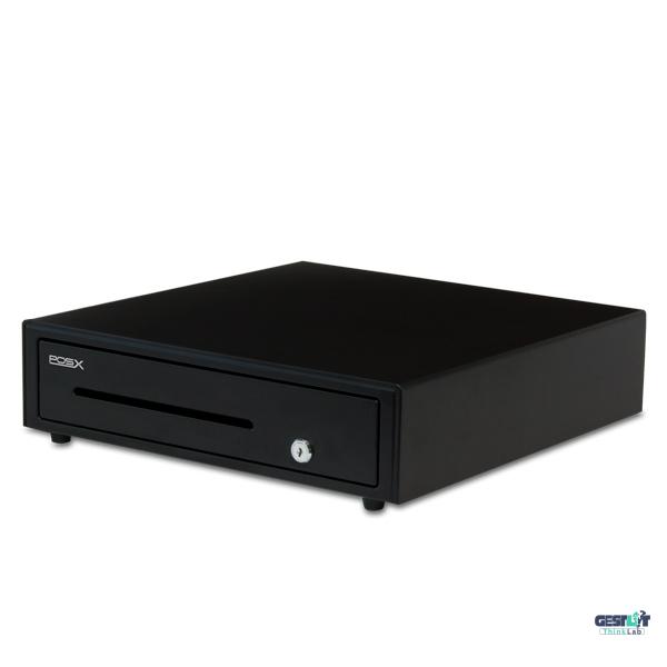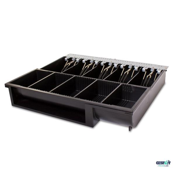 Heavy-duty 16-inch POS cash drawer with 5 bill and 8 coin compartments. RJ11/RJ12 printer-driven interface. Steel construction with 3-position lock for retail and hospitality.