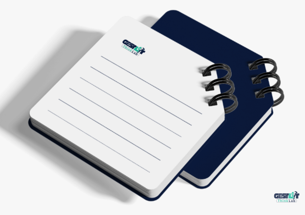 Professional A5 notebook with Gestlat branding. 50 pages of quality paper.